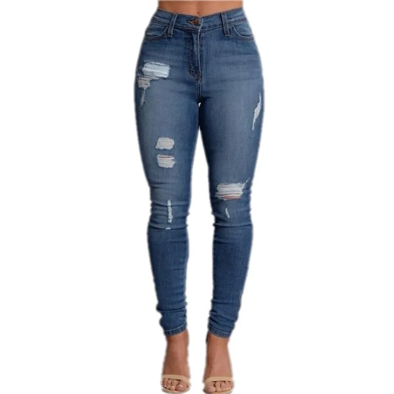 ORIGINAL YSMARKET S-4XL 2 Color Fashion Women Casual Button High Waist Skinny Pencil Denim Jeans Stretch Sli