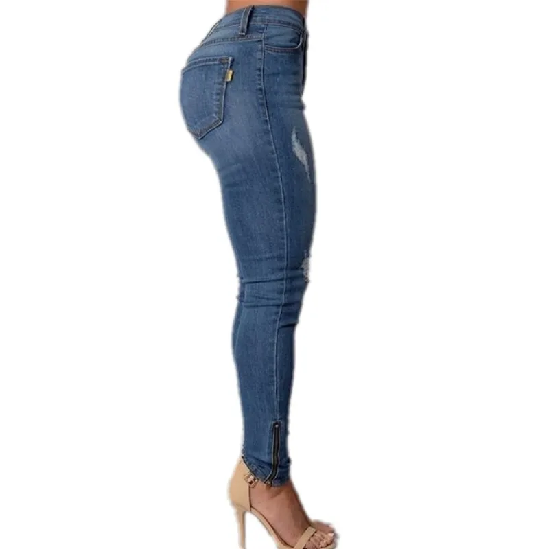 YSMARKET S-4XL 2 Color Fashion Women Casual Button High Waist Skinny Pencil Denim Jeans Stretch Sli